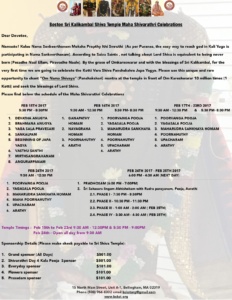 Maha Shivarathri Celebrations February 2, 2017 admin Event Start Date:February 15, 2017Event End Date:February 25, 2017Event Venue:Boston Sri Kalikambal Shiva Temple Chant “Om Nama Shivaya” 10 Million Times (1 Kotti )